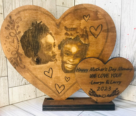 Wooden Heart Plaque with Laser Engraved Photo and Personalized Message