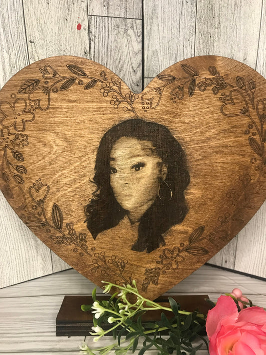 Single Wooden Heart Plaque with Laser Engraved Photo