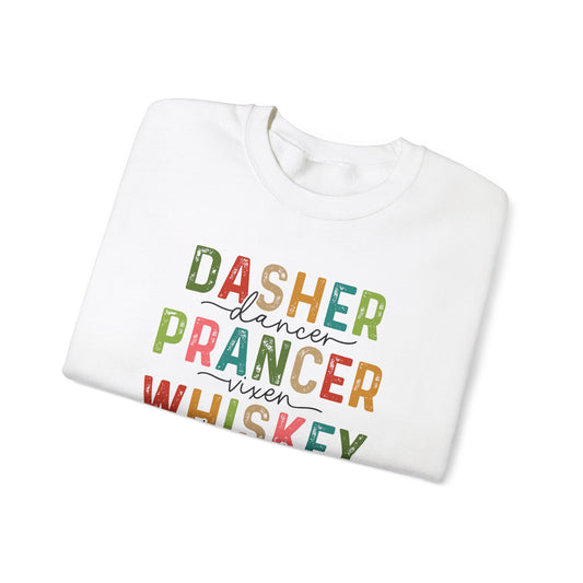 Dasher, Prancer, Whiskey, Vodka Adult Alcohol Themed Christmas Sweater Unisex Heavy Blend™ Crewneck Sweatshirt